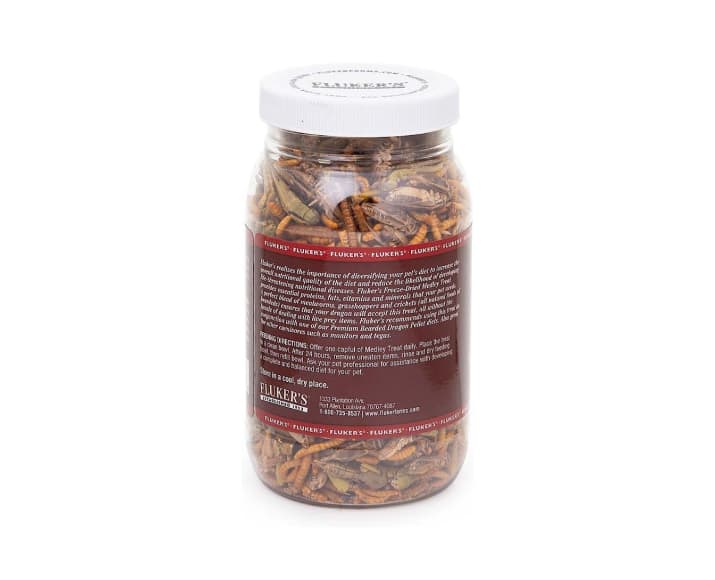 Fluker’s 5 Star Medley Freeze-dried Bearded Dragon Treats are nutritional snacks packed with variety for your reptile’s diet. These treats provide essential proteins, fats, vitamins and minerals for complete and balanced nutrition.